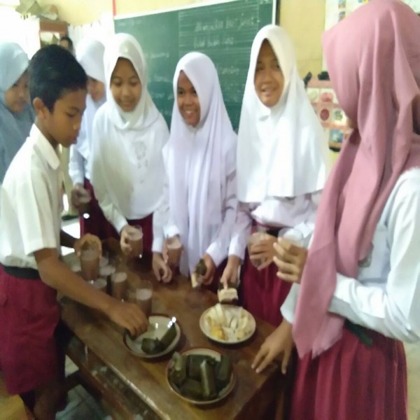 WONOSARI,- Memasuki hari kedua ini SD Negeri 4 Wonosari Masih memberikan kudapan berupa susu hangat dan sarapan snack tradisional